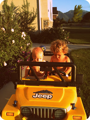 these pics are random, but are his life lately. cruising in the jeep with spencer and riding all of the fun rides at chuck-e-cheese with his cousins.